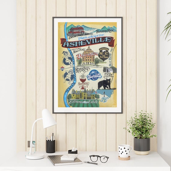 Asheville North Carolina Retro Map Print NC Art Biltmore Art Gifts