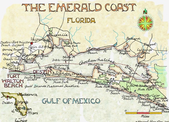 Florida’s Emerald Coast, Florida Map Etsy Canada