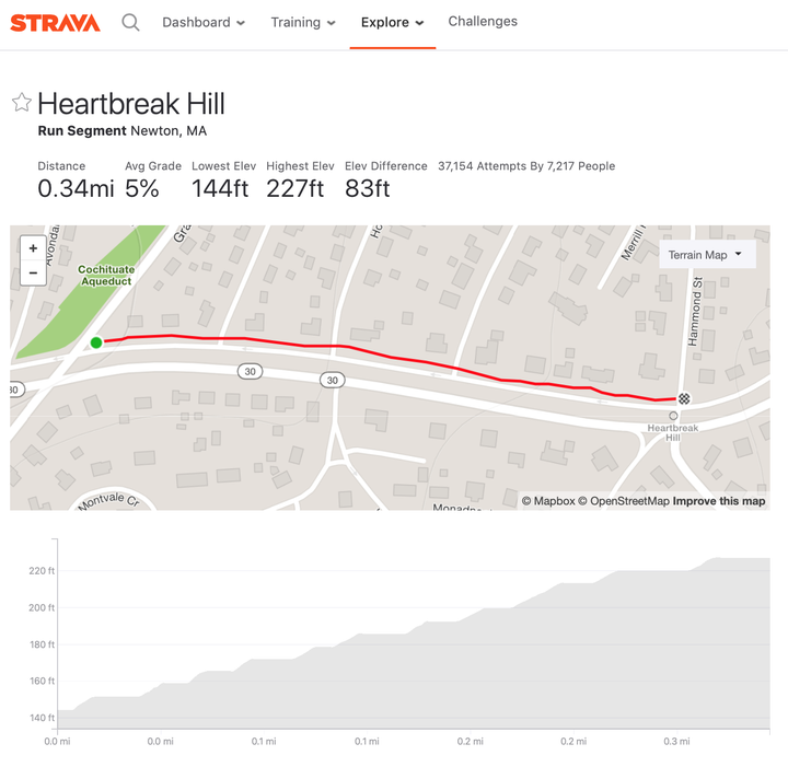 Heartbreak Hill Boston Marathon Map – With it’s highly competitive qualifying times, The Boston marathon thanks to his father, Dick, who pushes him through the course. This year, with Dick now 74 years old, family friend Bryan Lyons . Its 4 percent incline, according to Runner’s World, is the same as that of a stretch of the Boston Marathon that includes the notorious Heartbreak Hill. The difference is that the segment in .