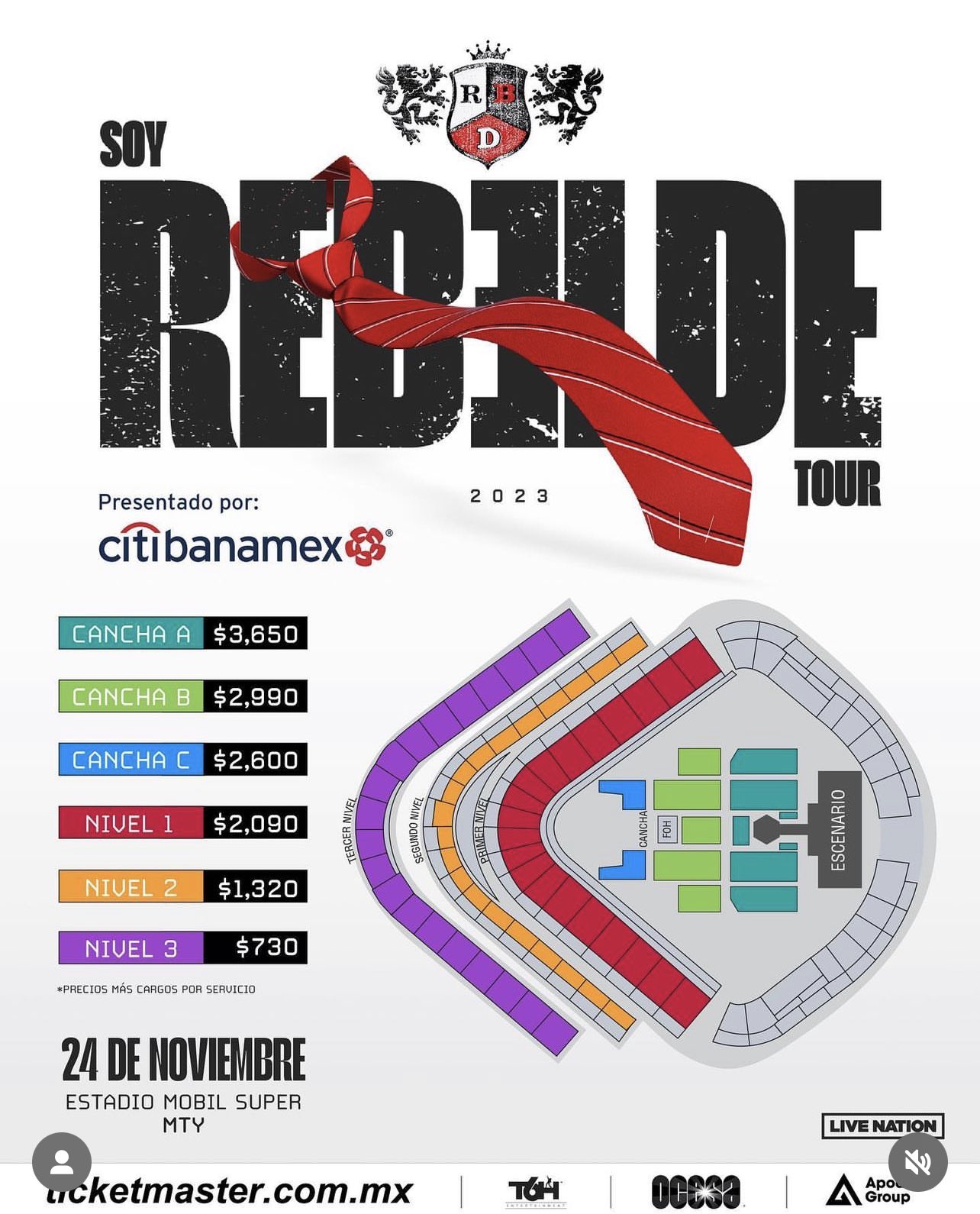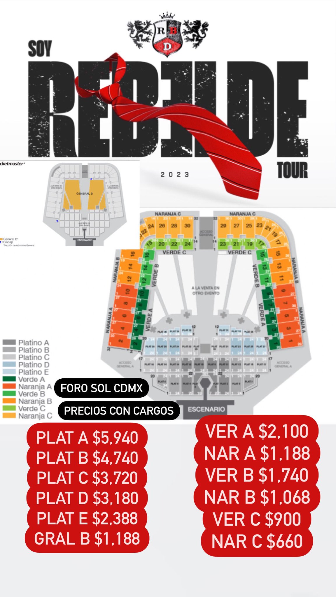 Ángel Rey 👑 on X: “Precios y Mapa RBD Soy Rebelde Estadio Mobil