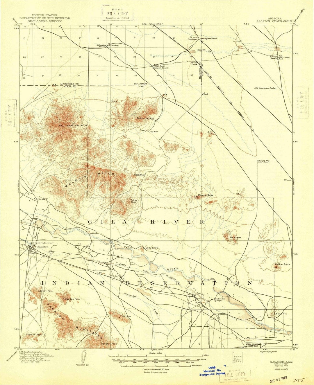 Sacaton, Arizona, map 1907, 1:62500, United States of America by