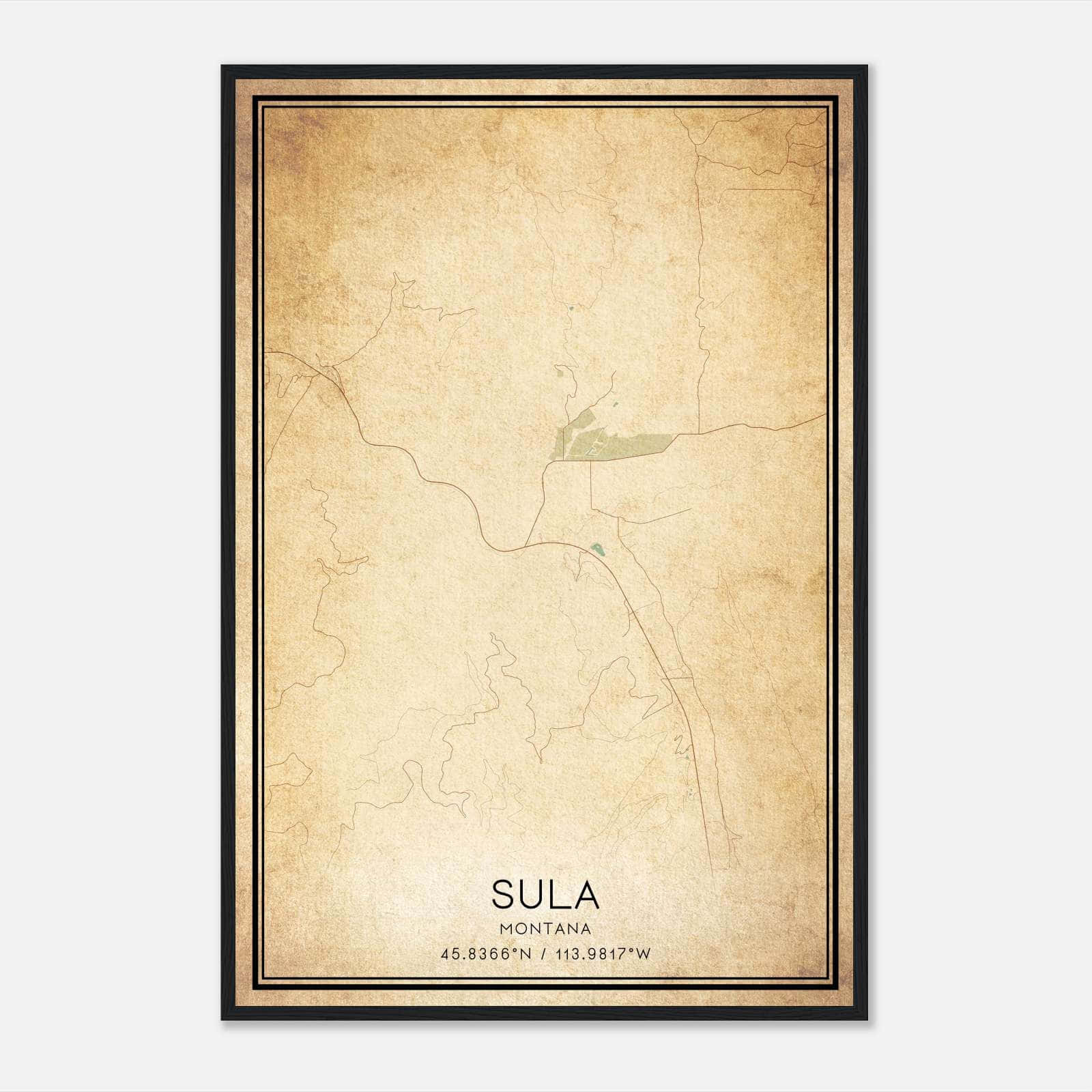 Vintage Sula Montana Map Poster, Sula MT City Road Wall Art Print