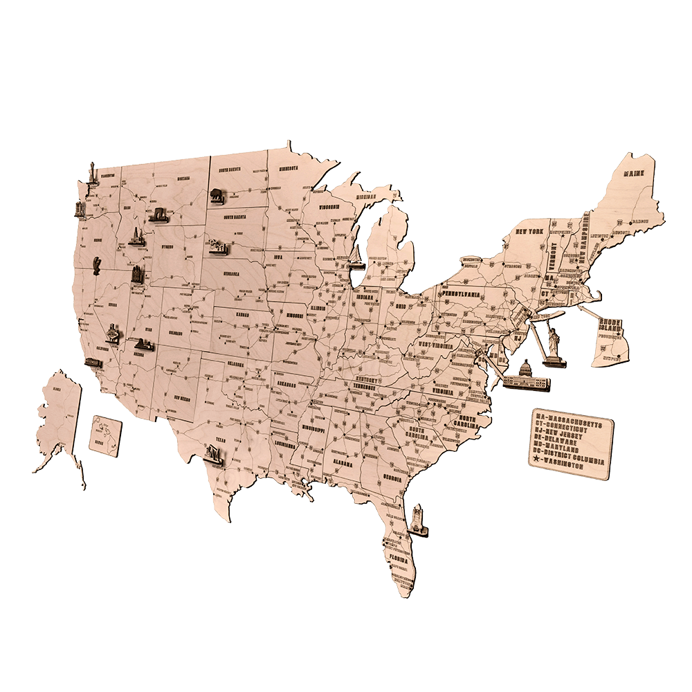 3D WOOD USA MAP PREMIUM WALL DECOR USA TRAVEL MAP